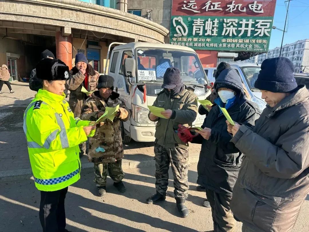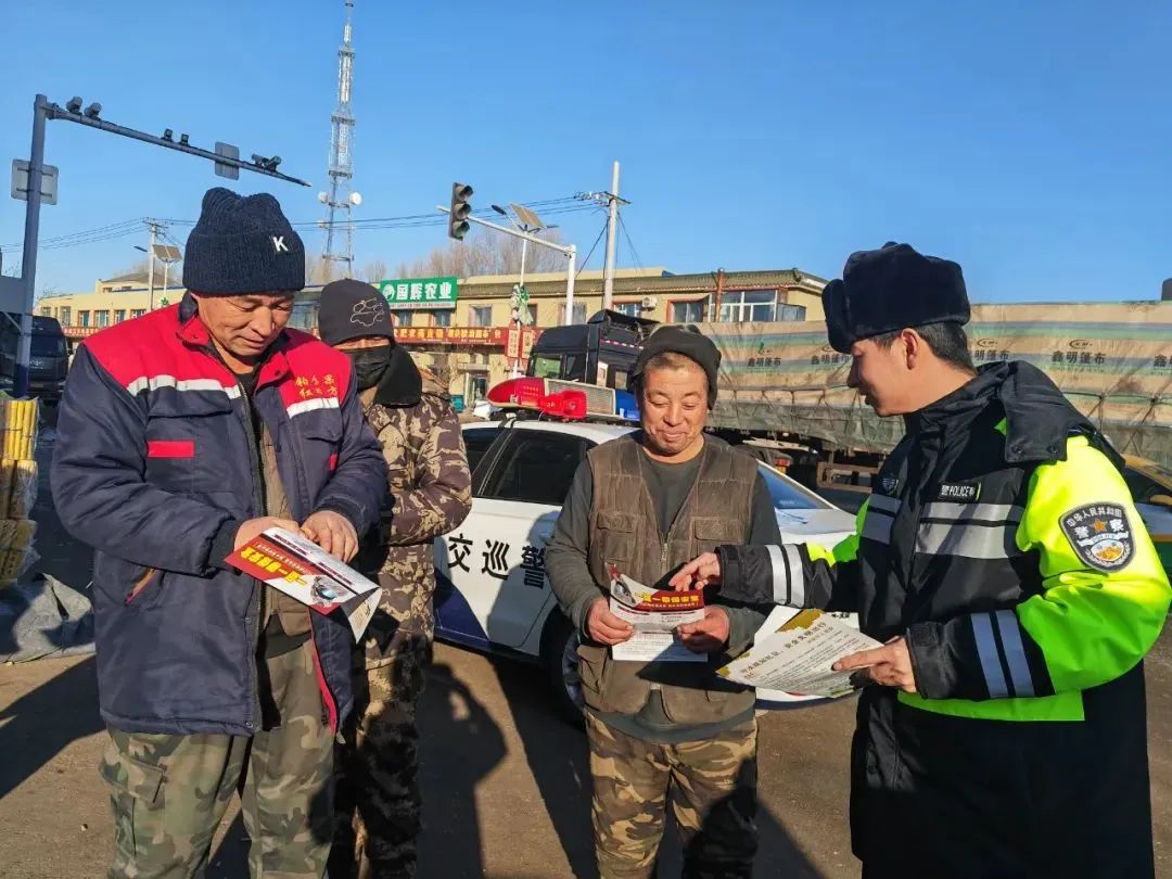 活动中,民警针对进城务工人员上下班多以摩托车、电动车为交通工具的现状,通过发放交通安全宣传资料、现场面对面解答等方式,向进城务工人员详细讲解交通安全出行常识。他们还结合近期辖区发生的典型交通事故案例,重点讲解三轮车违法载人、骑乘摩托车和电动车不戴安全头盔、酒醉驾等交通违法行为的严重性与危害性,提醒务工人员始终把“交通安全”放在首位,驾车出行要遵规守法,切勿违法载人、占道,要提前关注路况、天气,合理安排行程,尽量避免强降雪、大雾等恶劣天气期间驾车出行。